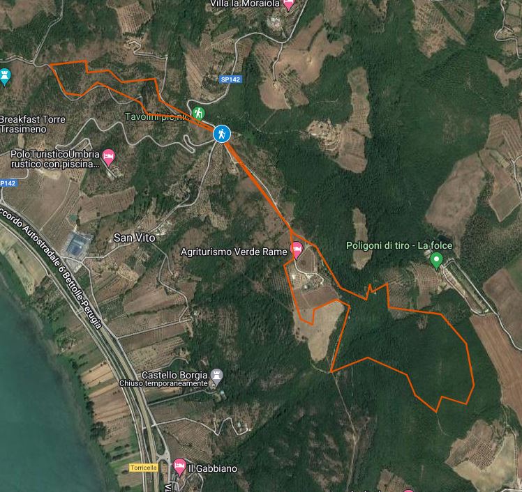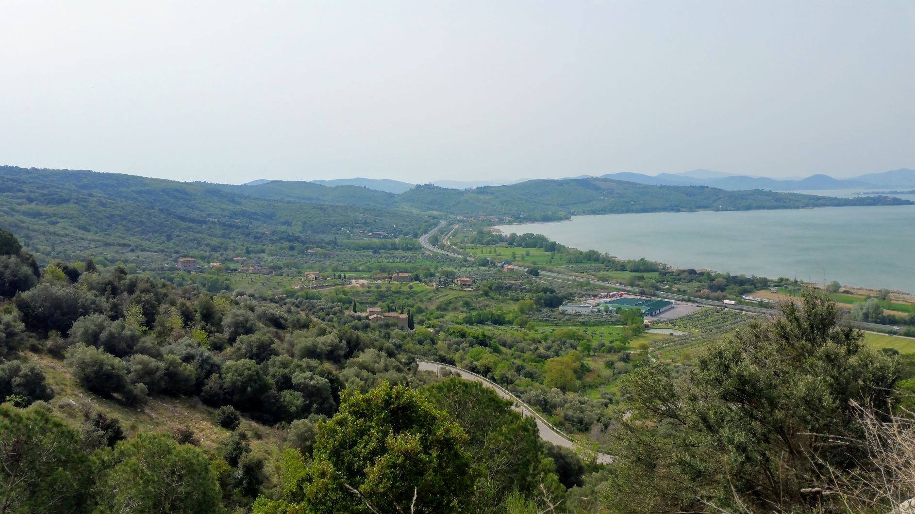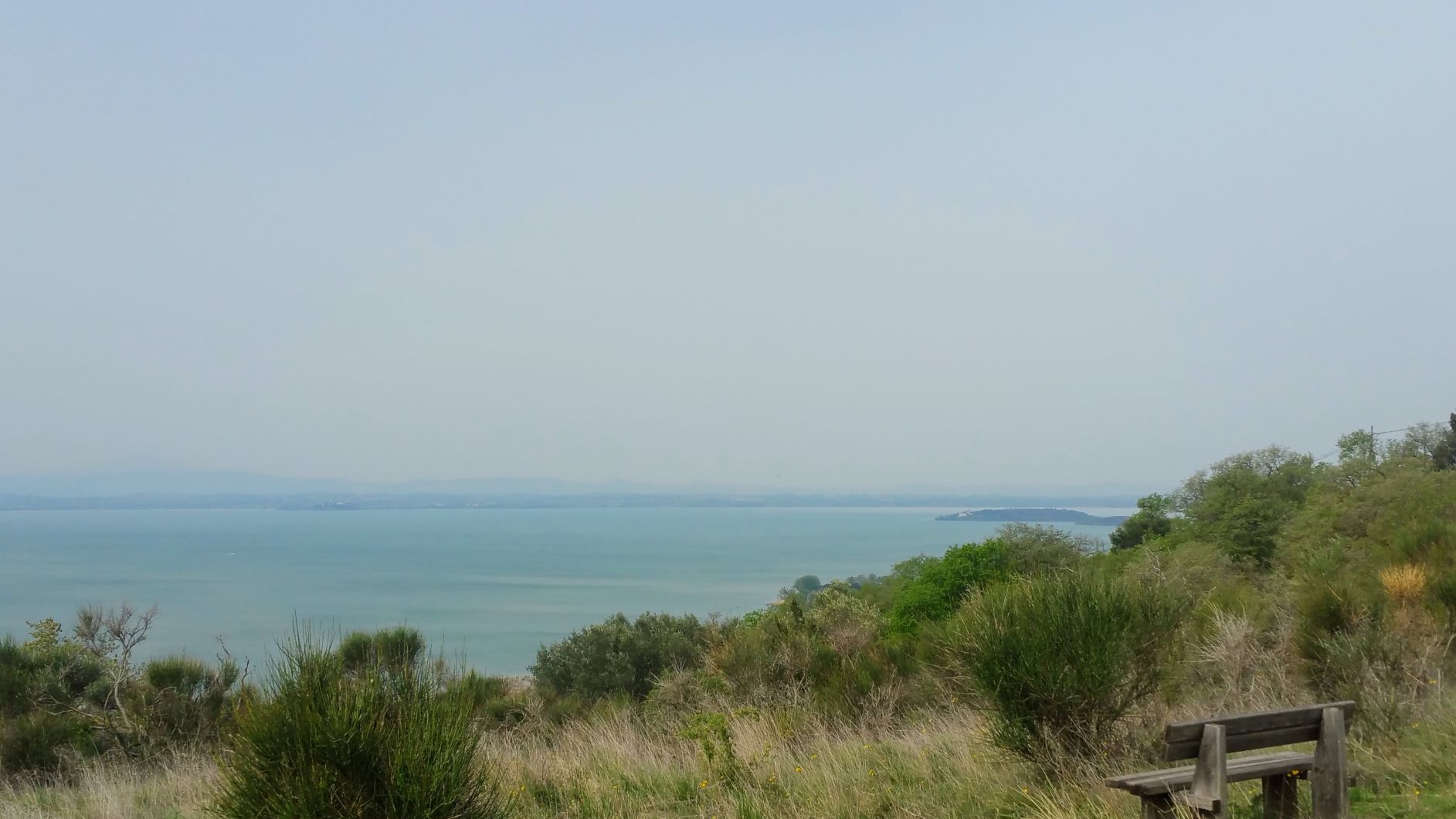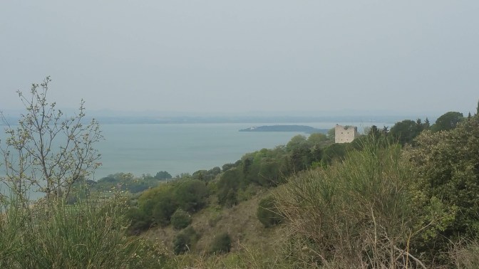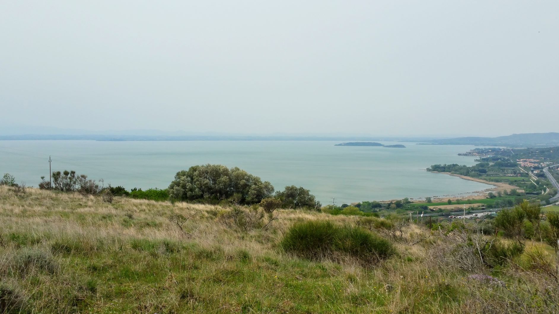 Ho concluso la sgambata con lo scorcio di Trasimeno che rimane normalmente nascosto da un’ampia proprietà privata. Per godermelo senza poi tornare sui miei passi ho dovuto percorrere un breve tratto su un fondo di erba alta e arbusti spinosi, in alcuni punti piuttosto fitti, ma non me ne sono pentito.