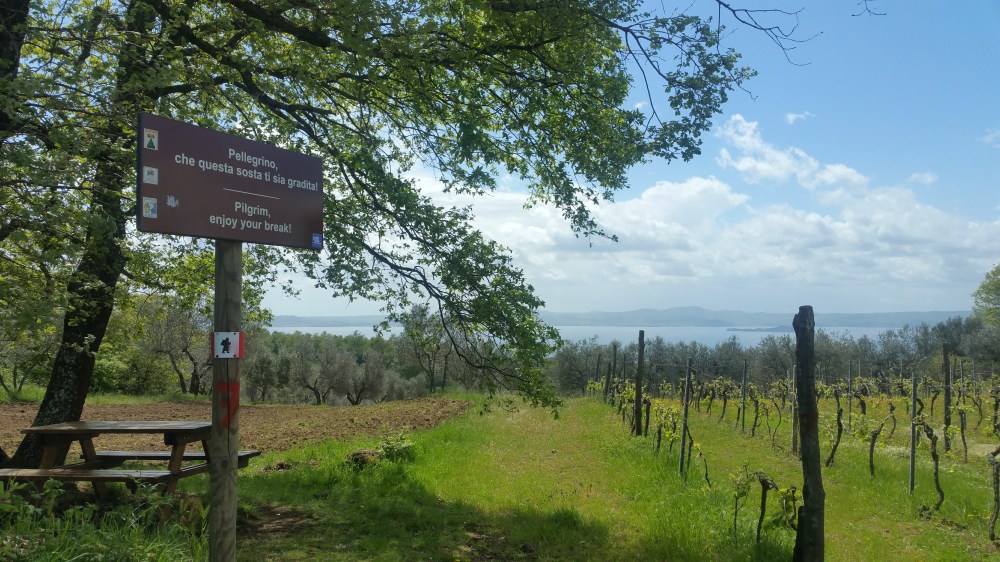 Considerata la fama della via, mi aspettavo un certo affollamento ma appena fuori Bolsena non incontriamo che pochi e rari pellegrini. La segnaletica ben chiara ci accompagna senza incertezze e il cammino conferma ben presto il meritato apprezzamento che riscuote .