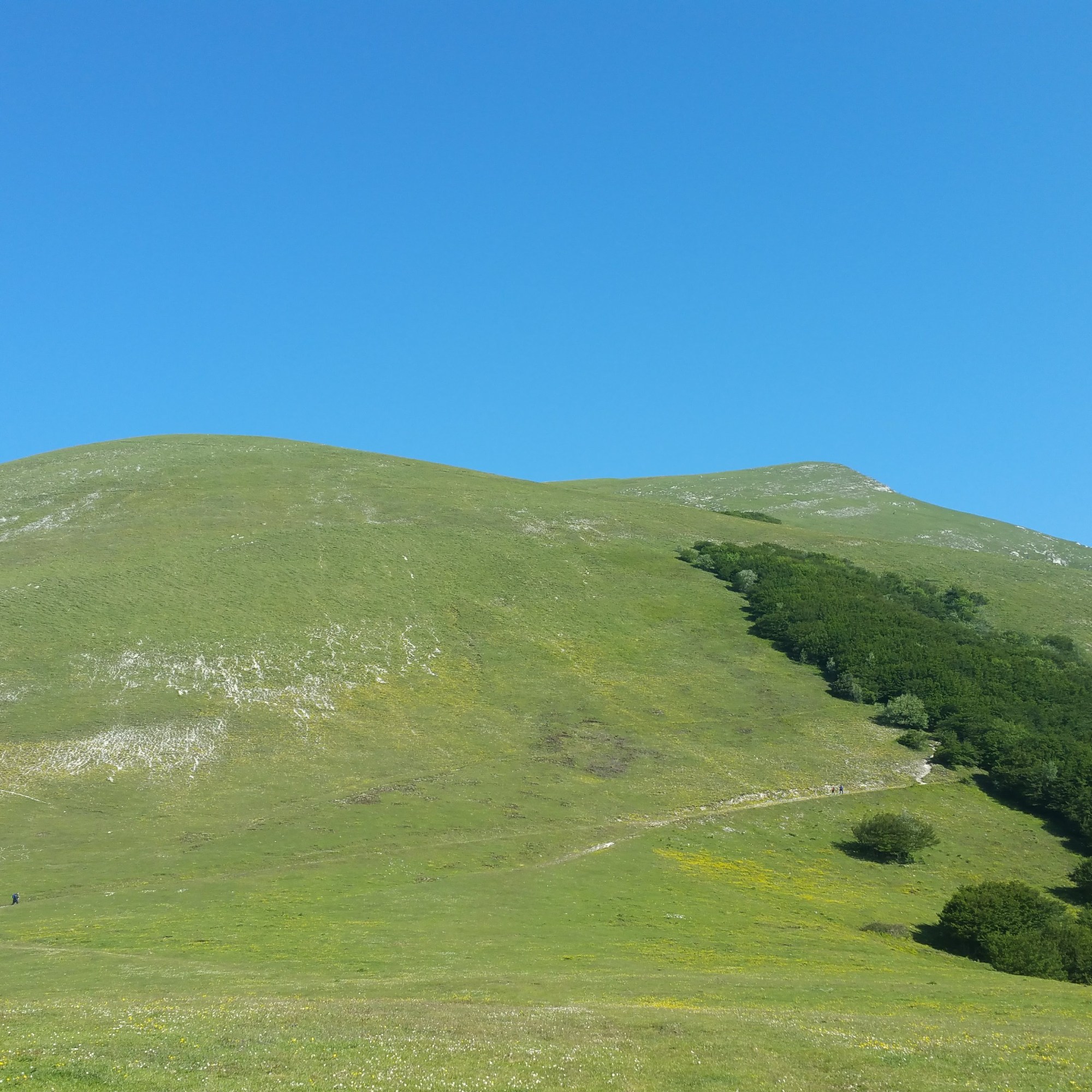 .. A sud i Sibillini li guardo senza sorpresa, me l’aspettavo, sono così massicci e inconfondibili….. purtroppo non ho confidenza con i monti a Nord, a parte il Catria, che è proprio lì a un passo. Penso di essermi ingannato, l’effetto cartina geografica è perfino aumentato, meno male che non ho visto tracce del Tirreno, mi sarei davvero preoccupato. Comunque scatto qualche foto, hai visto mai, l’obiettivo del mio telefono non sarà il massimo, però … Vabbè.