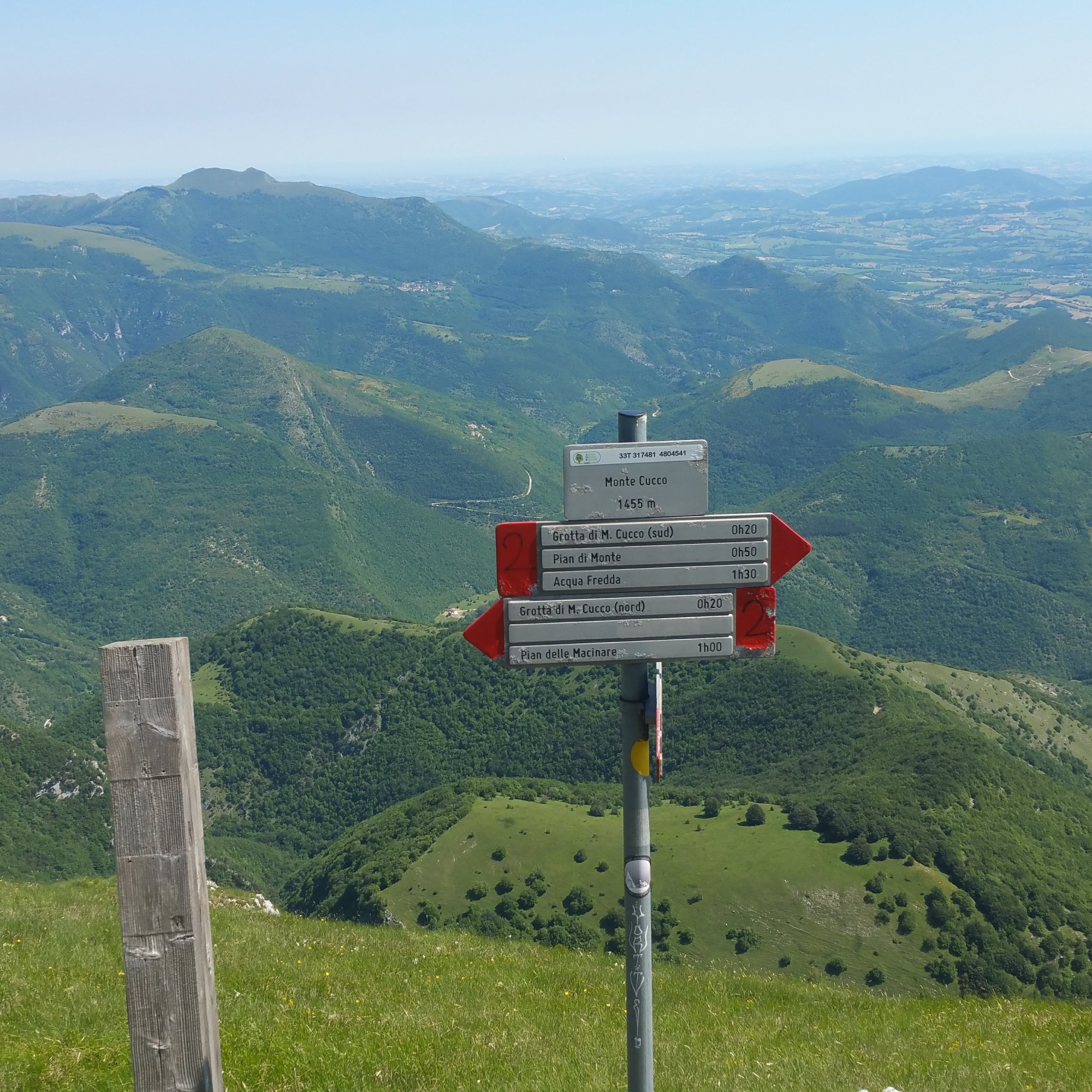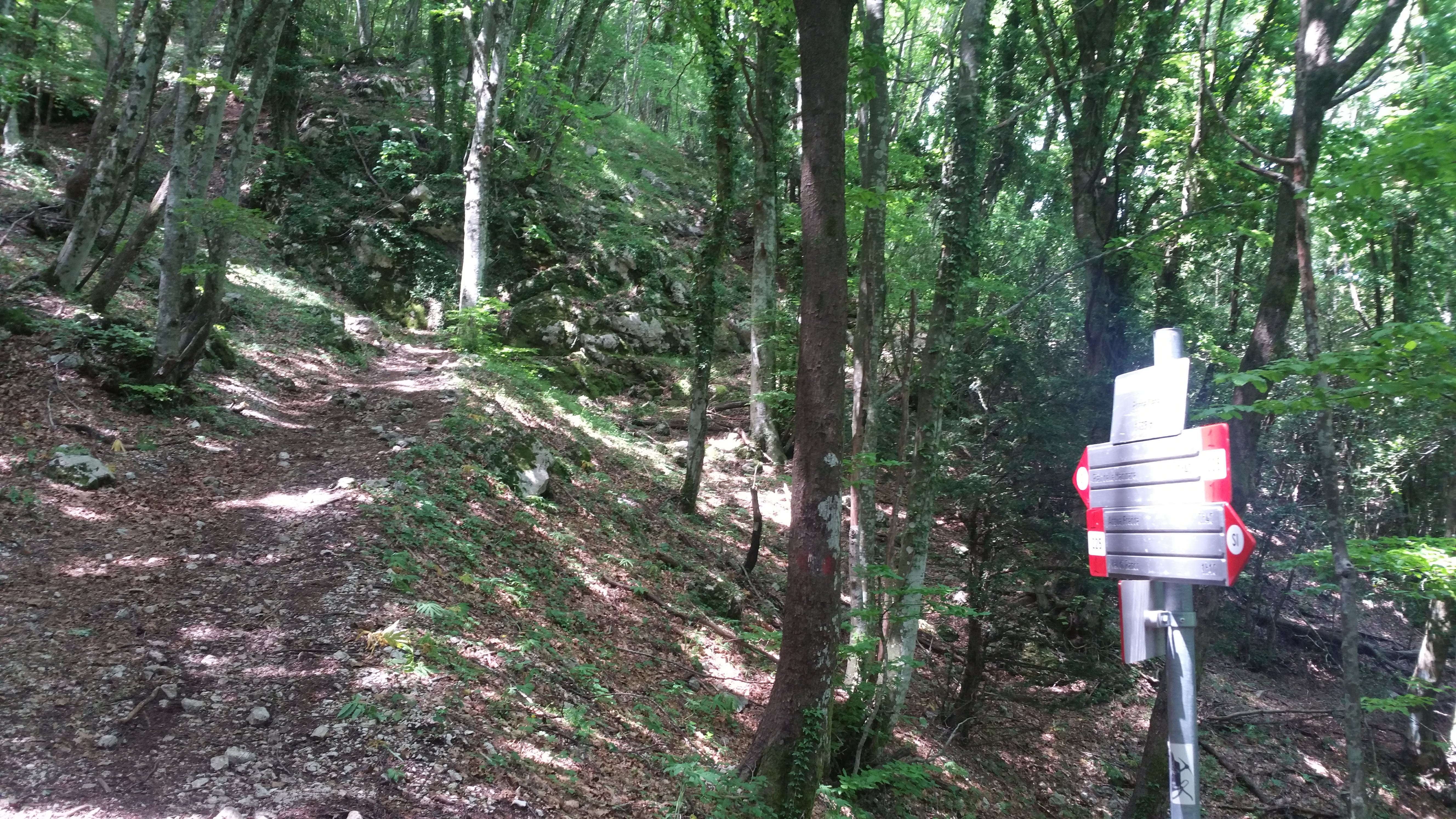 Incontriamo un simpatico signore e ci scambiamo due parole, mentre sospende per un momento la sua energica salita. Dice di essere un abituale escursionista innamorato di questi luoghi e non resisto a chiedergli se è possibile che abbia visto il mare dalla cima di Monte Cucco. Temevo che mi avrebbe guardato con sufficienza, invece si illumina in viso e si congratula per la nostra buona sorte, tanto da considerare una variazione dell’itinerario che aveva programmato e andar su anche lui.