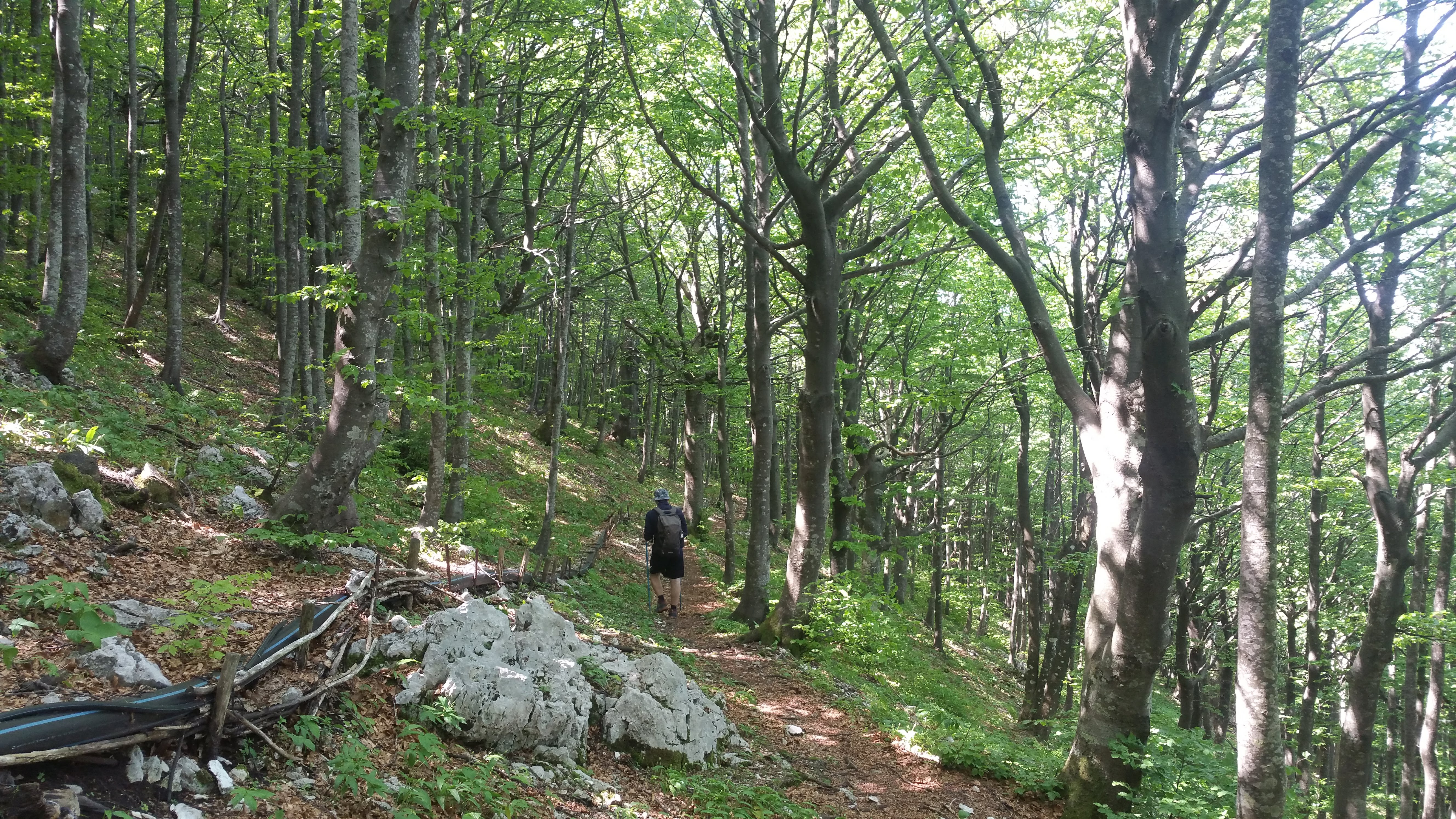 Entriamo nella faggeta secolare che ci accompagnerà per il resto della sgambata e non posso che apprezzare i suoi custodi, da secoli riuniti nell’Università degli Uomini Originari di Costacciaro nell’intento di preservare intatta la bellezza di questo bosco.