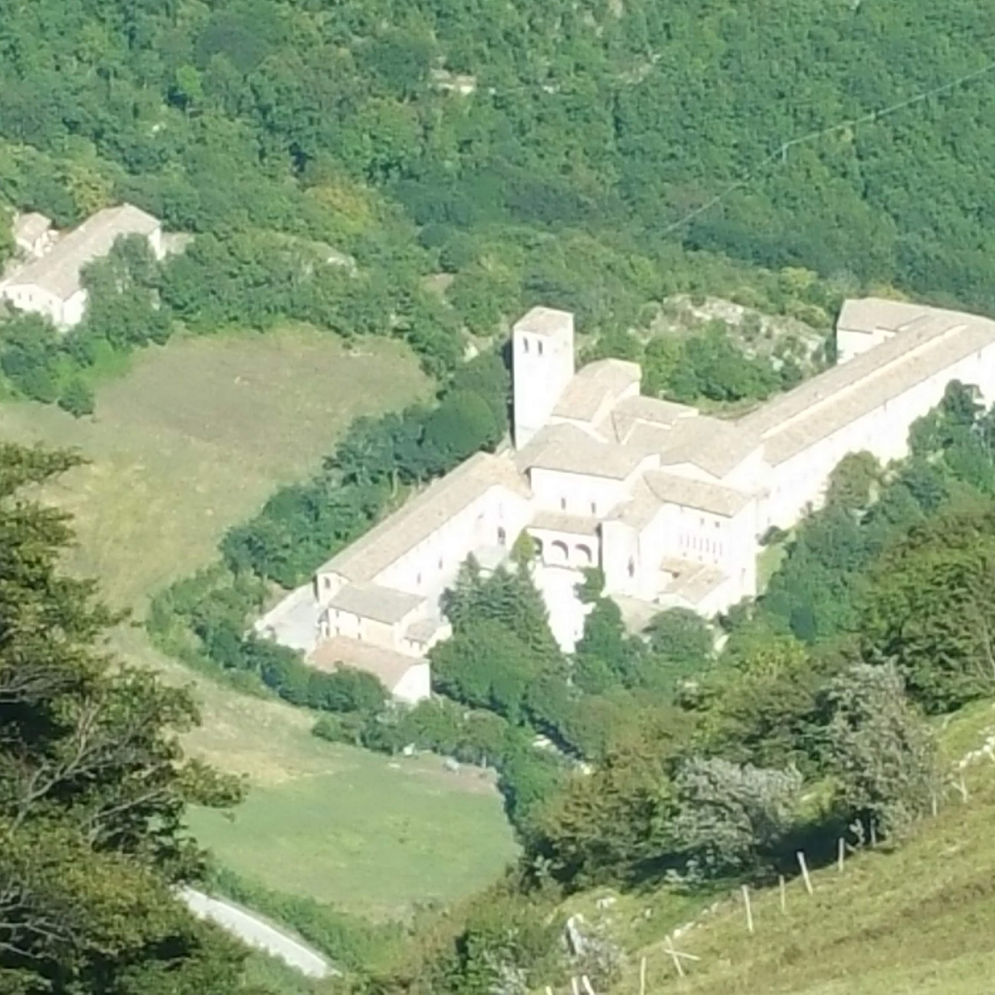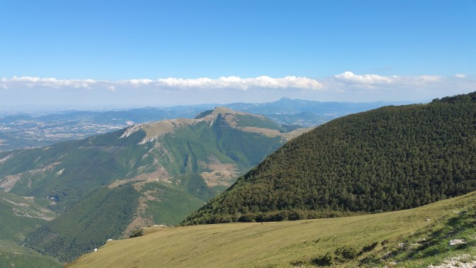 Là sotto, a sinistra, il Monastero si mostra dall’alto in tutta la sua solenne interezza. A destra, un ultimo chilometro e mezzo mi separa dai 1700 metri del Catria e dal suo panorama. Più o meno altri 30-40 minuti per le mie dolenti gambe, più altri 30 per tornare qui. Un’ora in più, solo un’ora ….. o più?